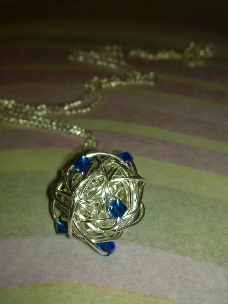 030720111553 Published December 14, 2011 at 1944 × 2592 in Necklaces wire wrapped (silver with blue Swarovski crystals, 30″ chain displayed) wire wrapped (silver with blue Swarovski crystals, 30″ chain displayed)