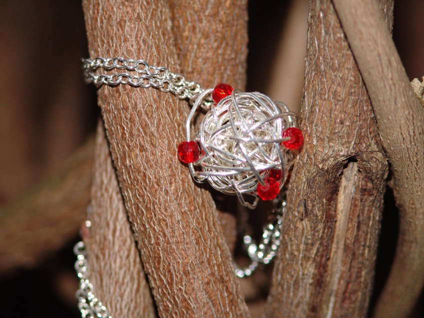 wire wrapped silver with red Czech crystals Published November 7, 2011 at 2268 × 1701 in Necklaces wire wrapped with red Czech crystals (silver plated, 30″ displayed) Like Loading...